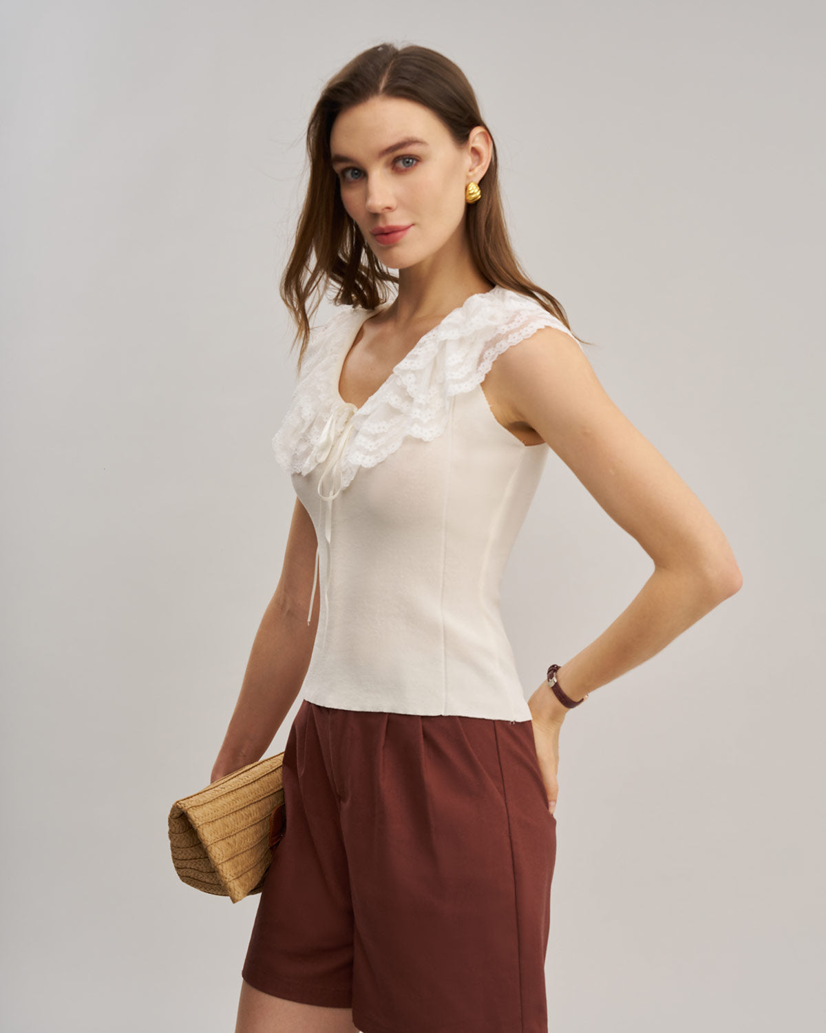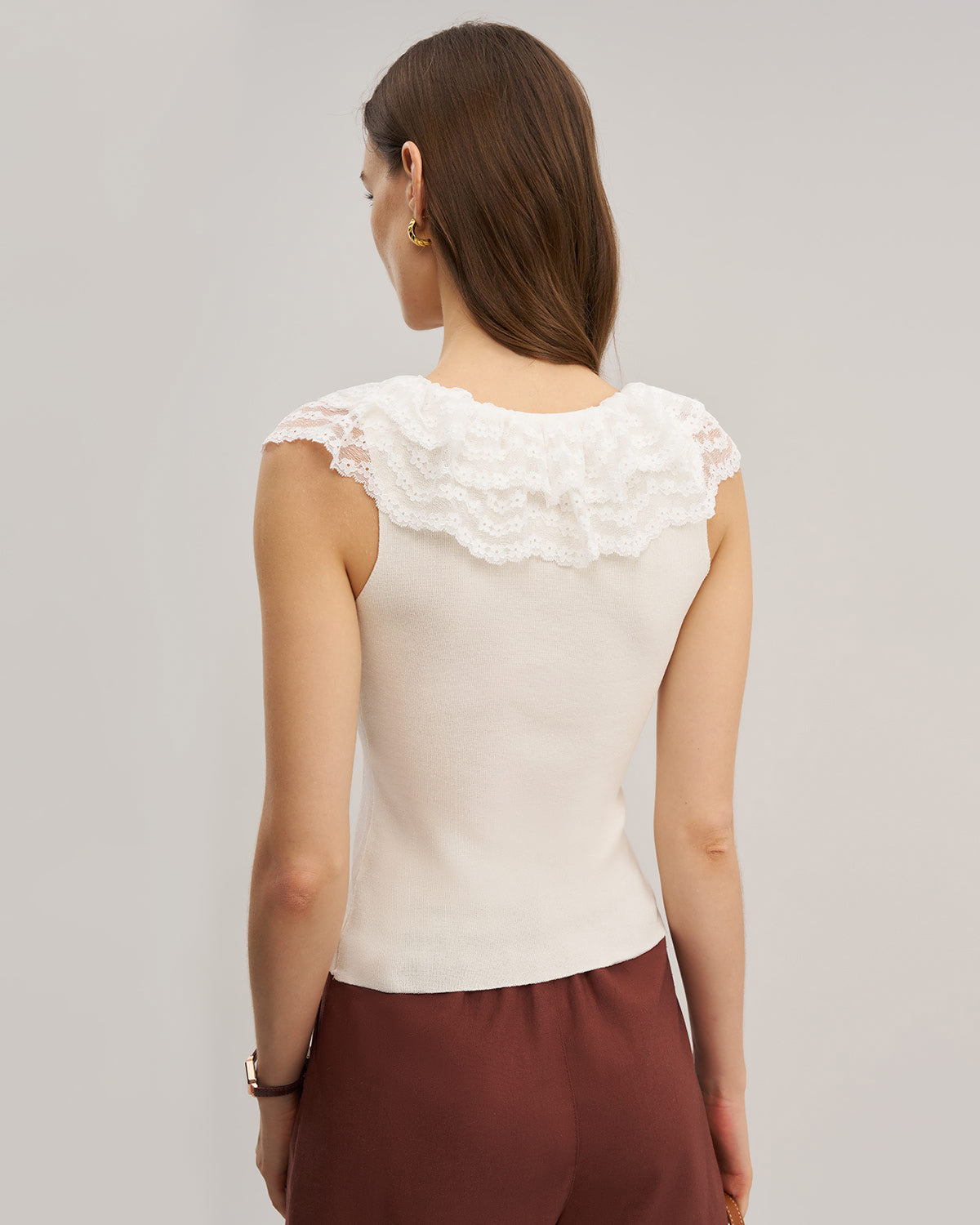 Kayısı U Yaka Dantel Yelek