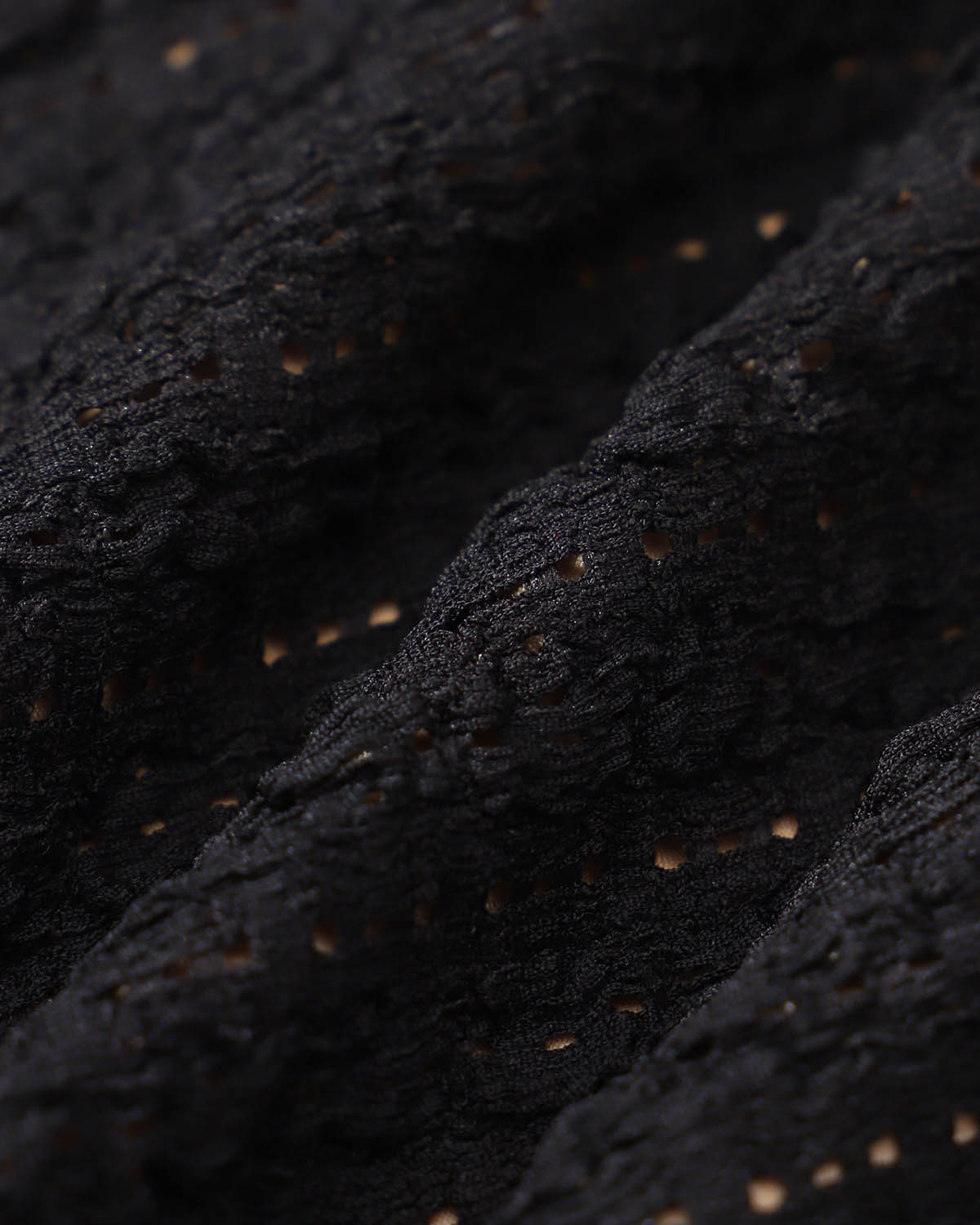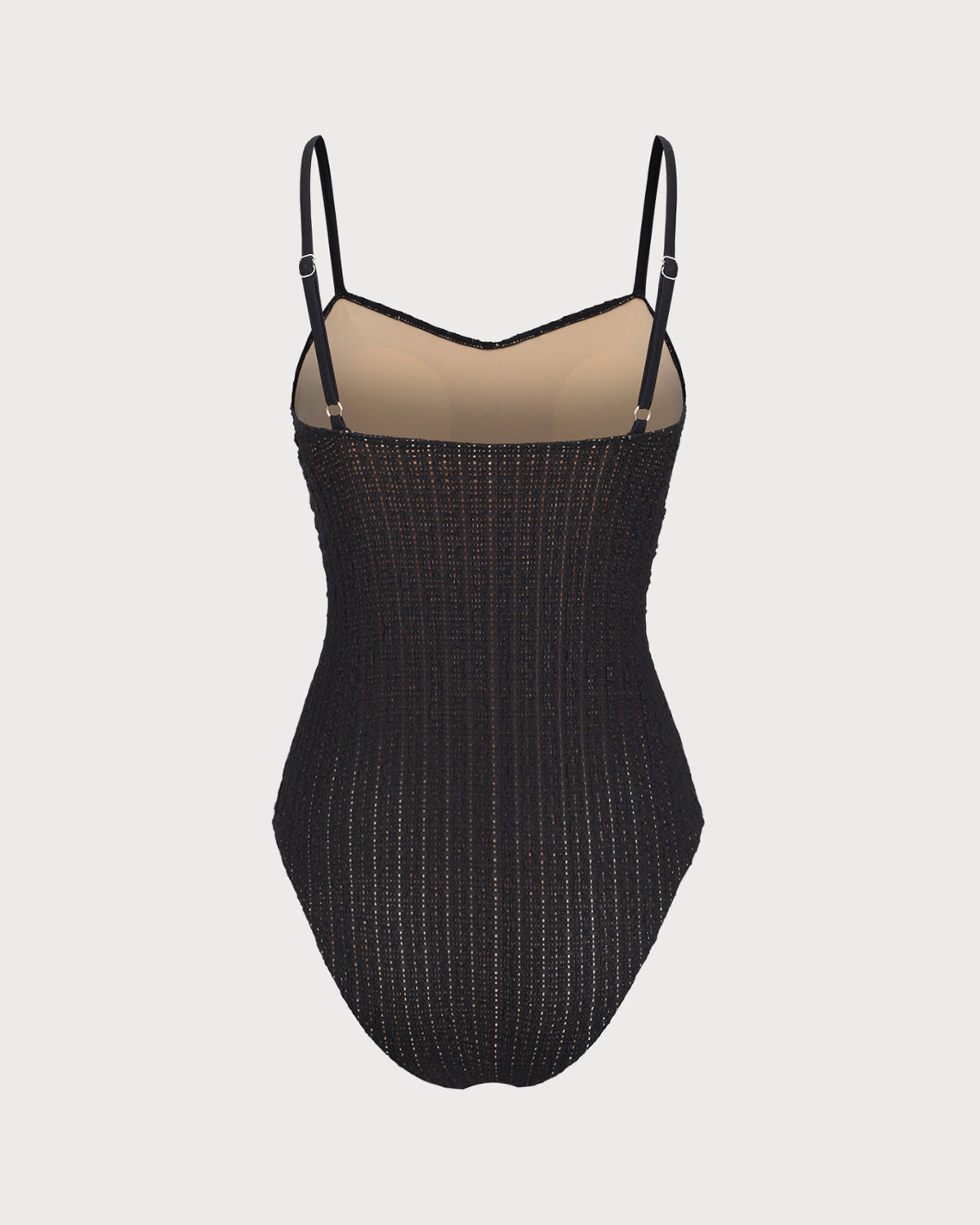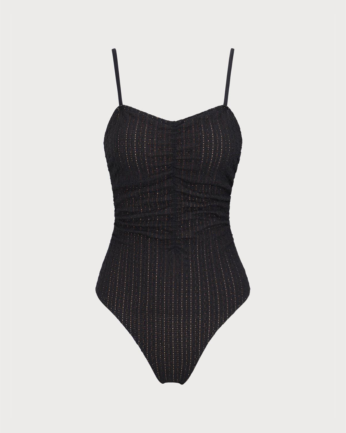 Siyah Oyuk Kırışık Tek Parça Mayo