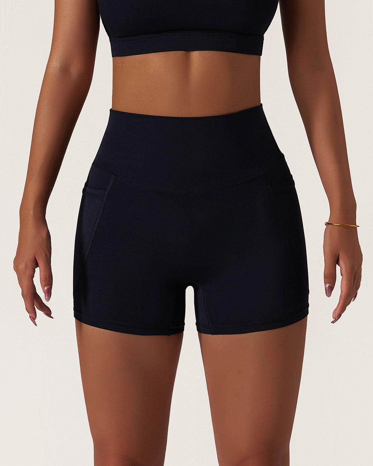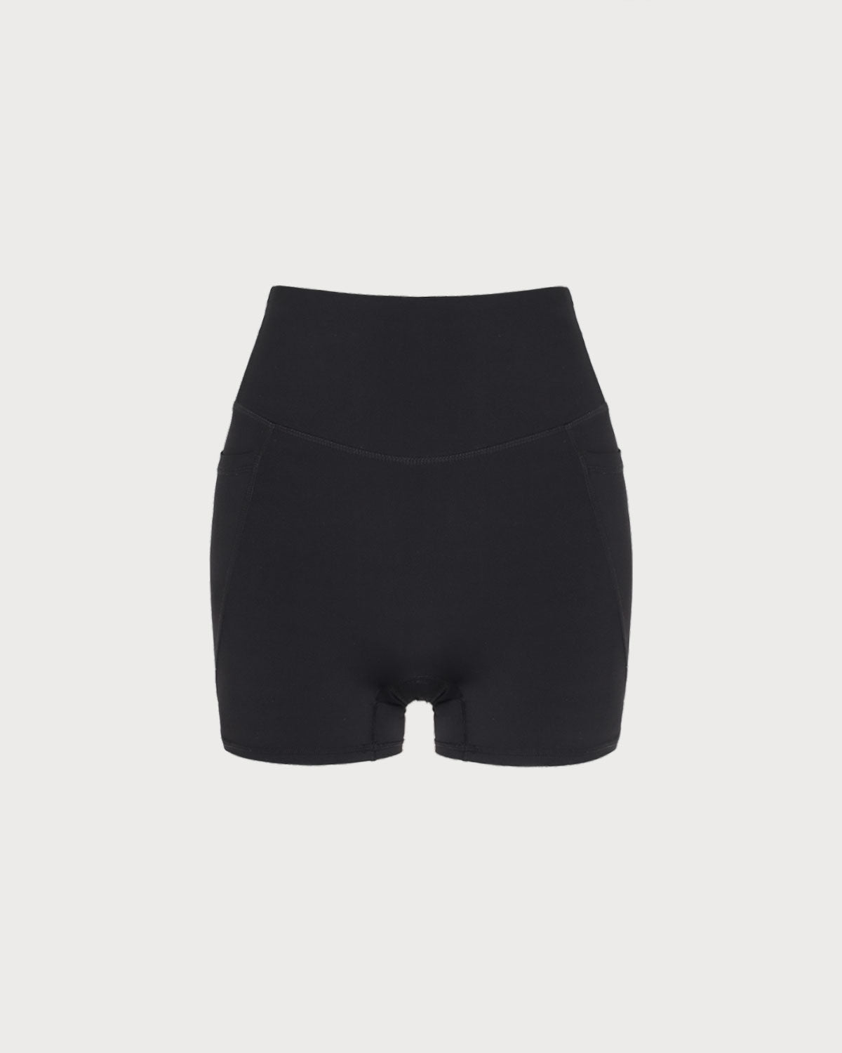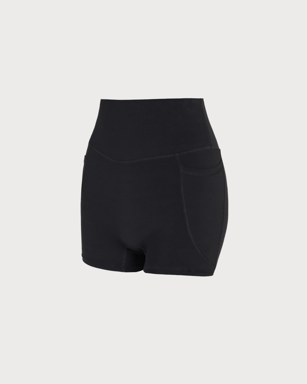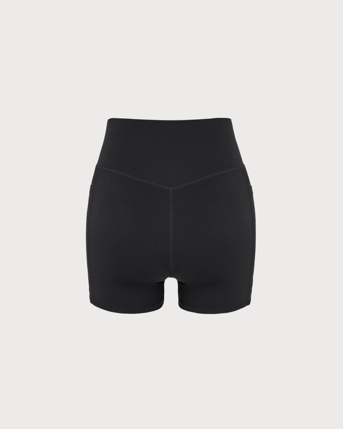 Siyah Cepli Yüksek Bel Yoga Şortu