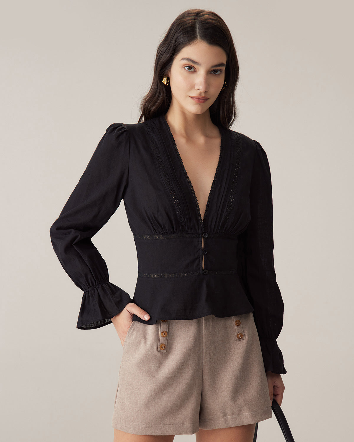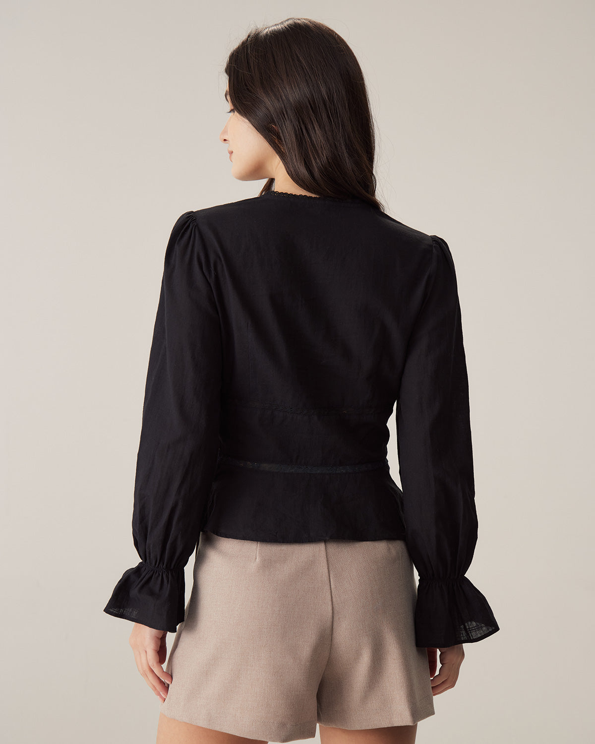 V yakalı bu zarif model, yumuşak fırfır detaylarıyla vurgulanarak klasik silüete kadınsı bir hava katıyor. Hafif ve nefes alabilen kumaştan üretilen bu model, rahat ama şık bir görünüm için mükemmel bir şekilde dökülüyor.