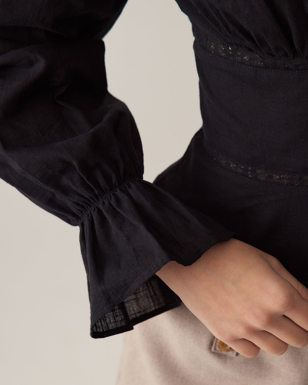 Bu Volanlı Bluz Pamuktan üretilmiştir. Pamuklu kumaş nem dengesi, dayanıklılık ve çevre dostu yapısıyla cilde temas ettiğinde yumuşak ama sert olmayan bir his verir.