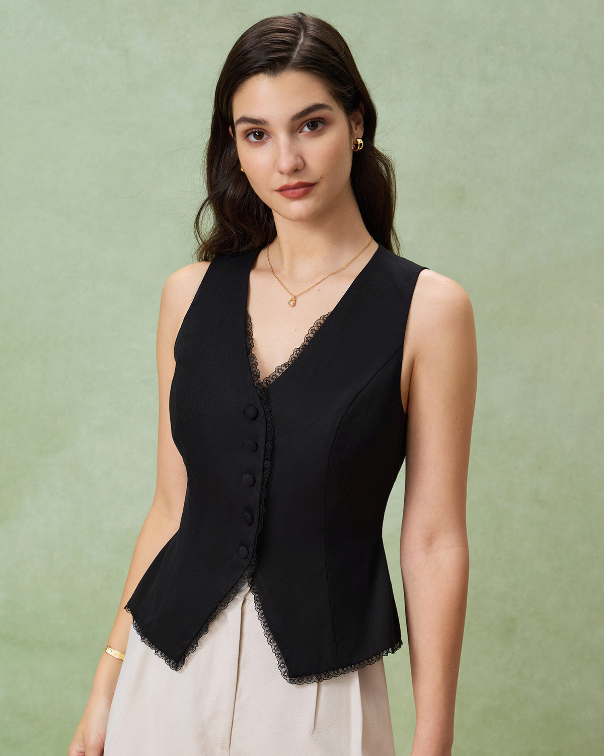 Siyah V Yaka Tek Sıra Düğmeli Yelek, şık ve çok yönlü bir katmanlı parçadır. Özel kesimi, klasik V yakası ve düğmeli ön kısmıyla her kıyafete şık bir dokunuş katar; hem profesyonel hem de günlük görünümler için mükemmeldir.