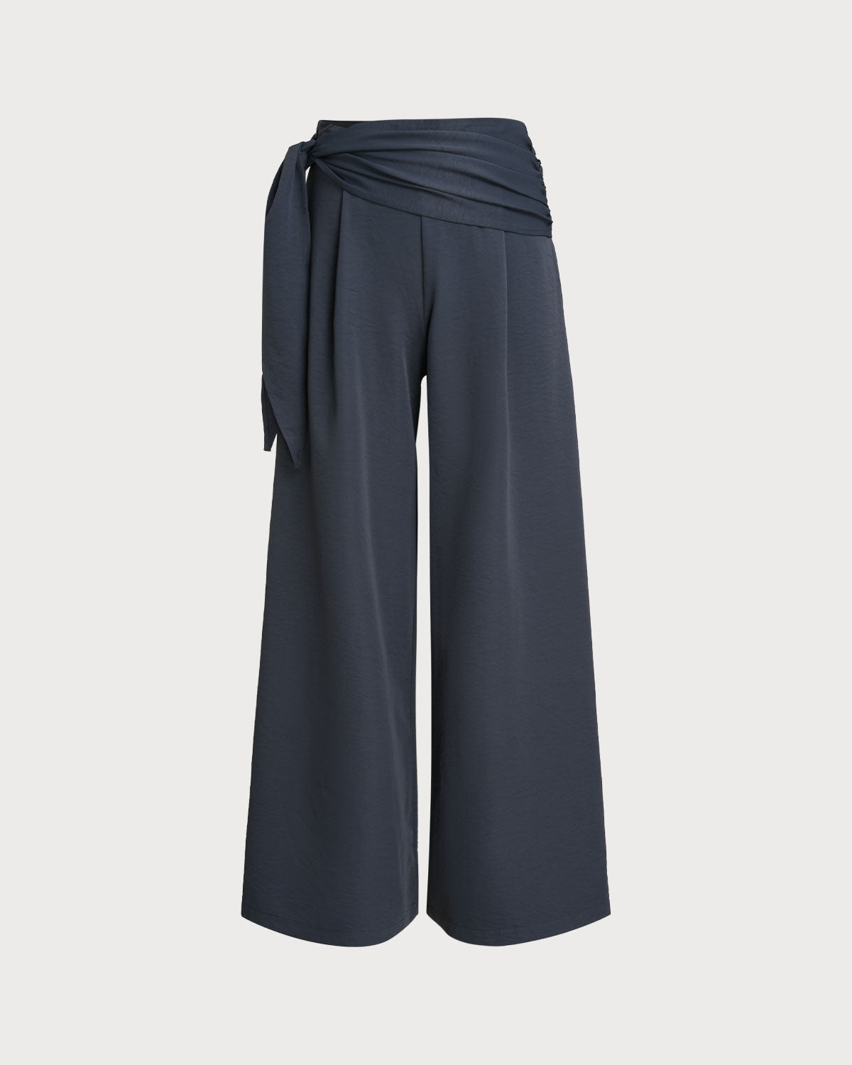 Mavi Elastik Bel Günlük Geniş Paça Pantolon