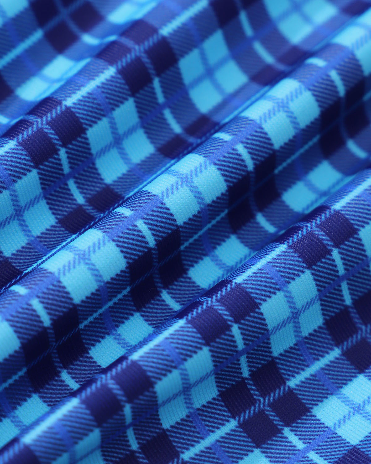 Mavi Örgü Vintage Ekose Desenli Bikini Takımı