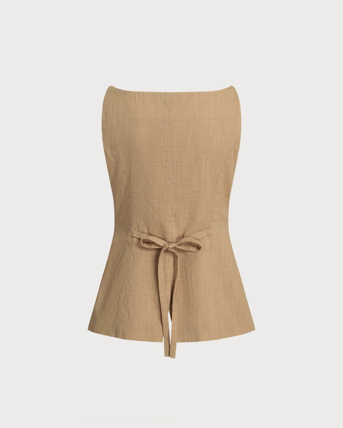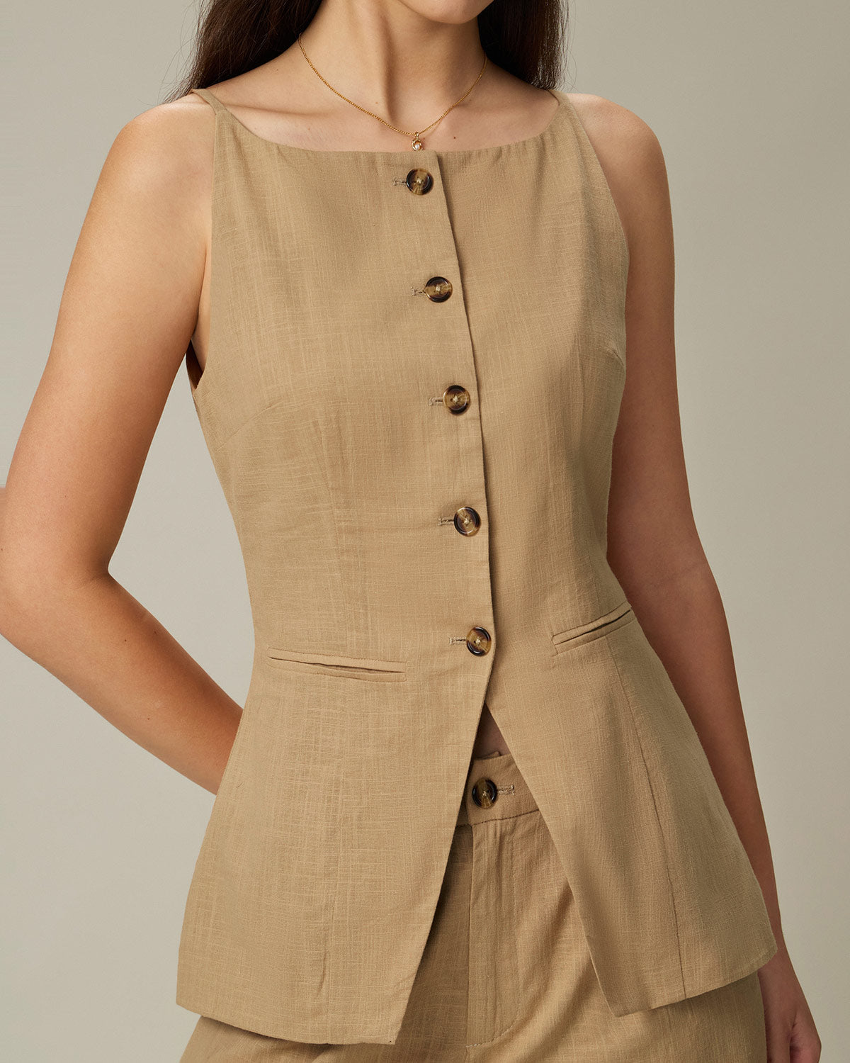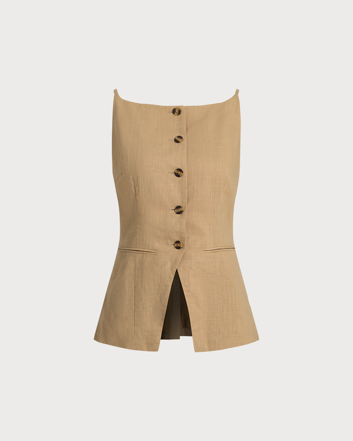 Kahverengi Tekne Yaka Tek Sıralı Yelek