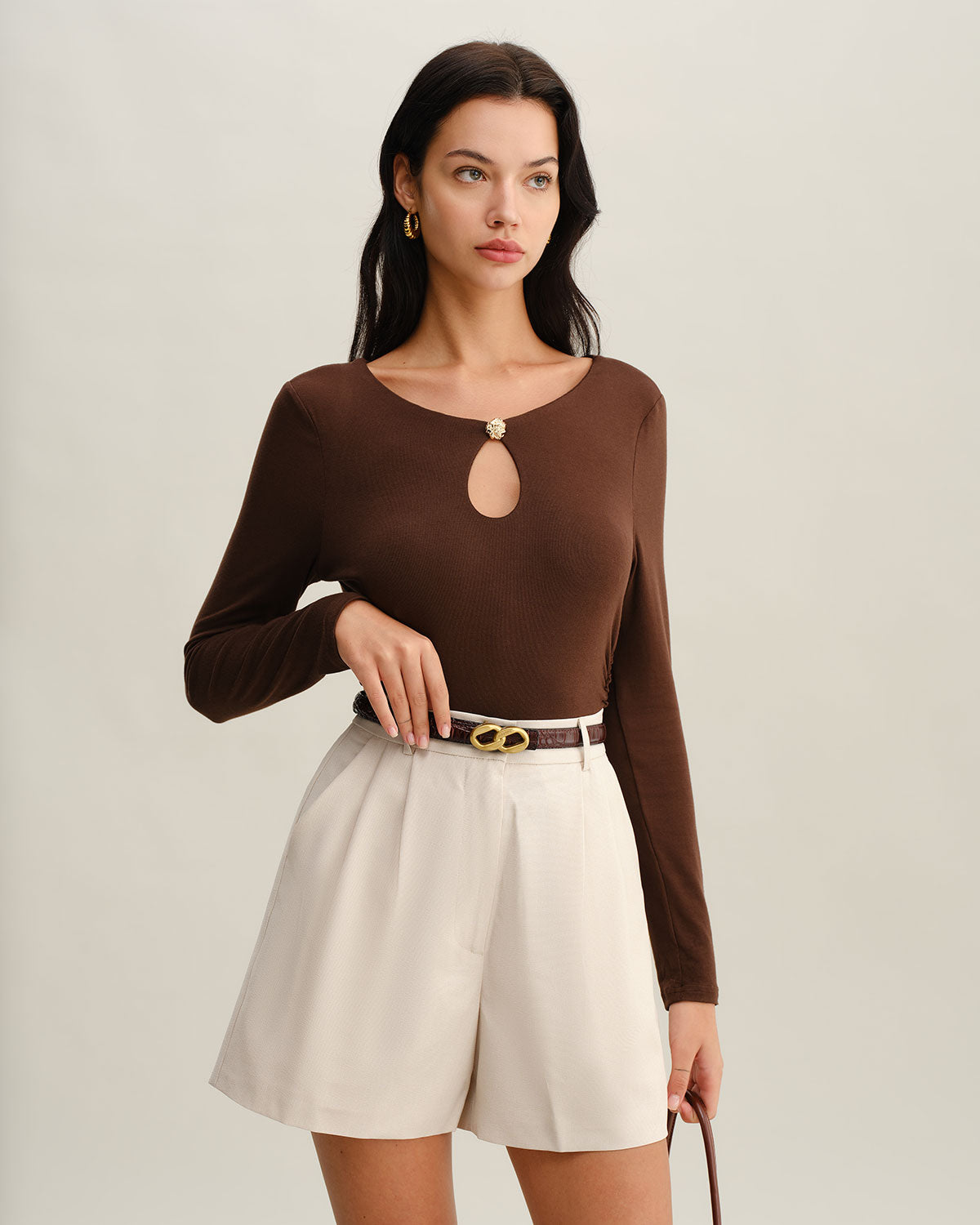 Kahverengi Yuvarlak Yaka İnce Örgü Tişört
