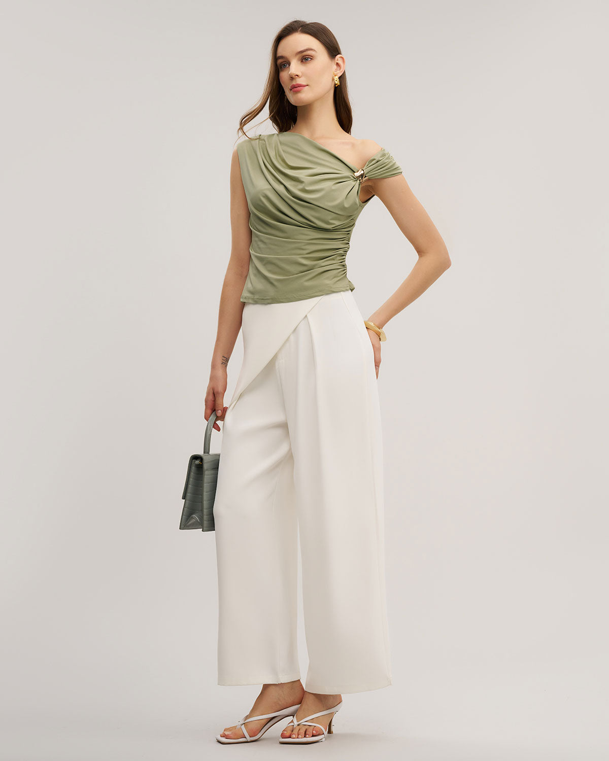 Yeşil Kapüşonlu Yakalı Büzgülü Tişört