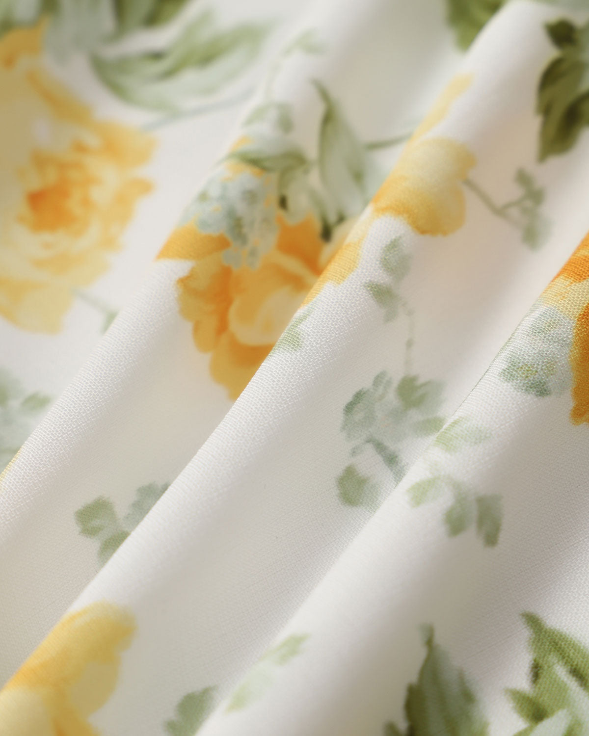 Bu Çiçekli Mini Elbise Polyester'den üretilmiştir. Polyester, yumuşak hissettiren, parlak görünen ve hızlı kuruyan yapay bir elyaftır. Ayrıca dayanıklıdır ve kırışıklıklara, lekelere ve güneş ışığına karşı dayanıklıdır.