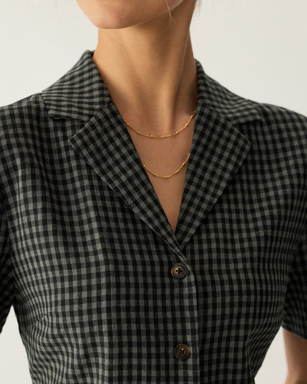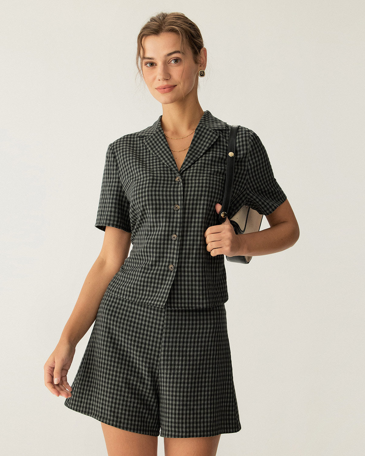 Gri Yakalı Ekose Kısa Kollu Bluz