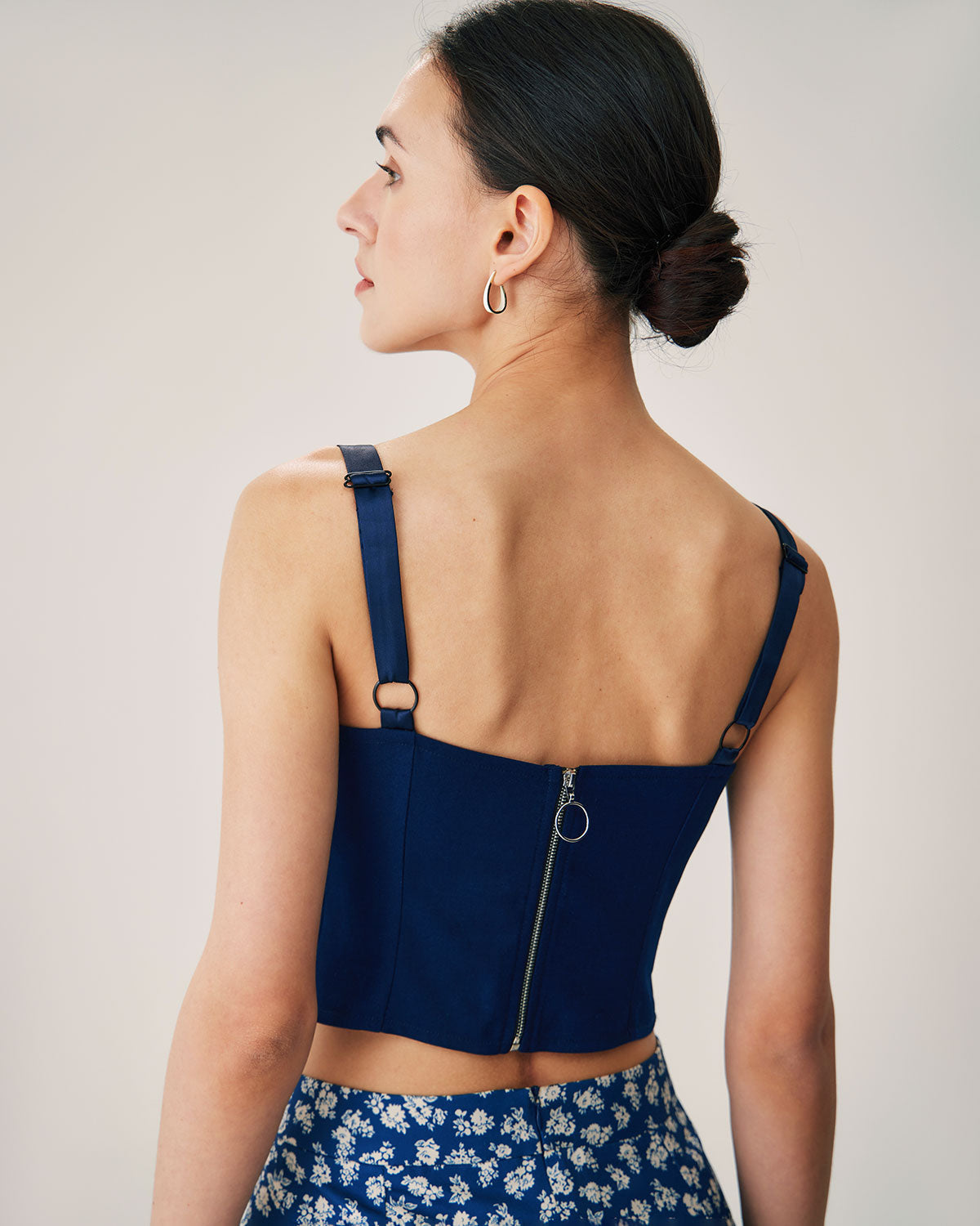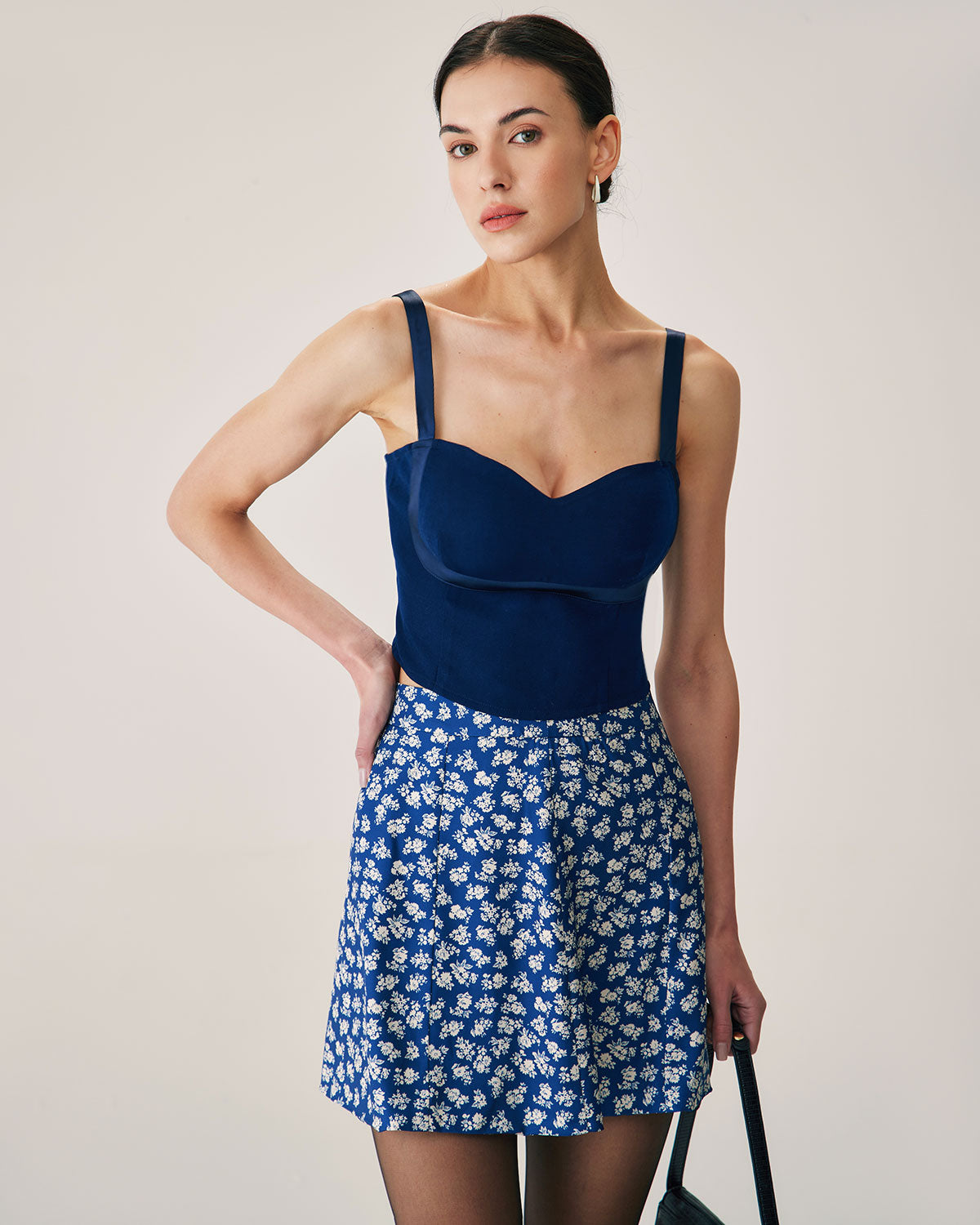 Bu trend kısa üst, zarif kalp yakası ve kişiye özel uyum için ayarlanabilir ince askılarıyla öne çıkıyor. Zengin lacivert tonu, sofistike bir dokunuş katarak onu çeşitli durumlar için çok yönlü bir seçim haline getiriyor.