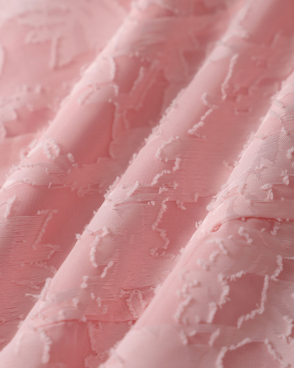 Pembe Jakarlı Büzgülü Kare Yaka Midi Elbise