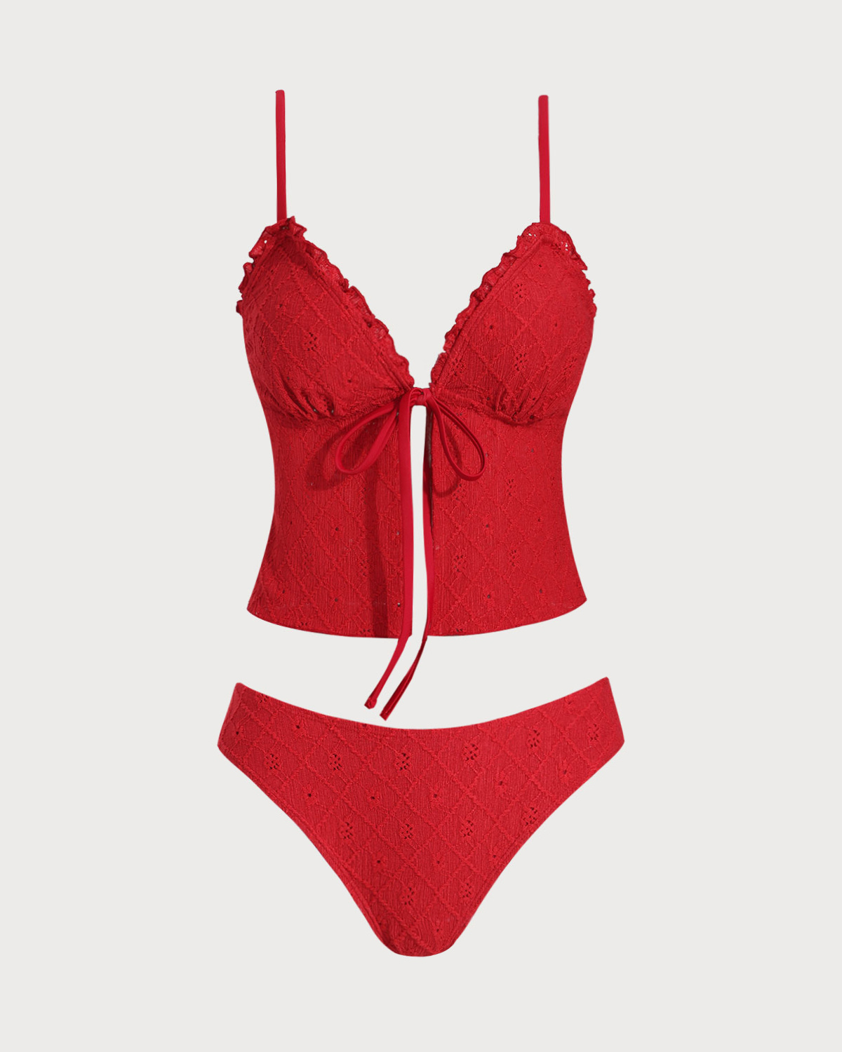 Kırmızı Ön Bağlamalı Tankini Üç Parçalı Tankini Takımı