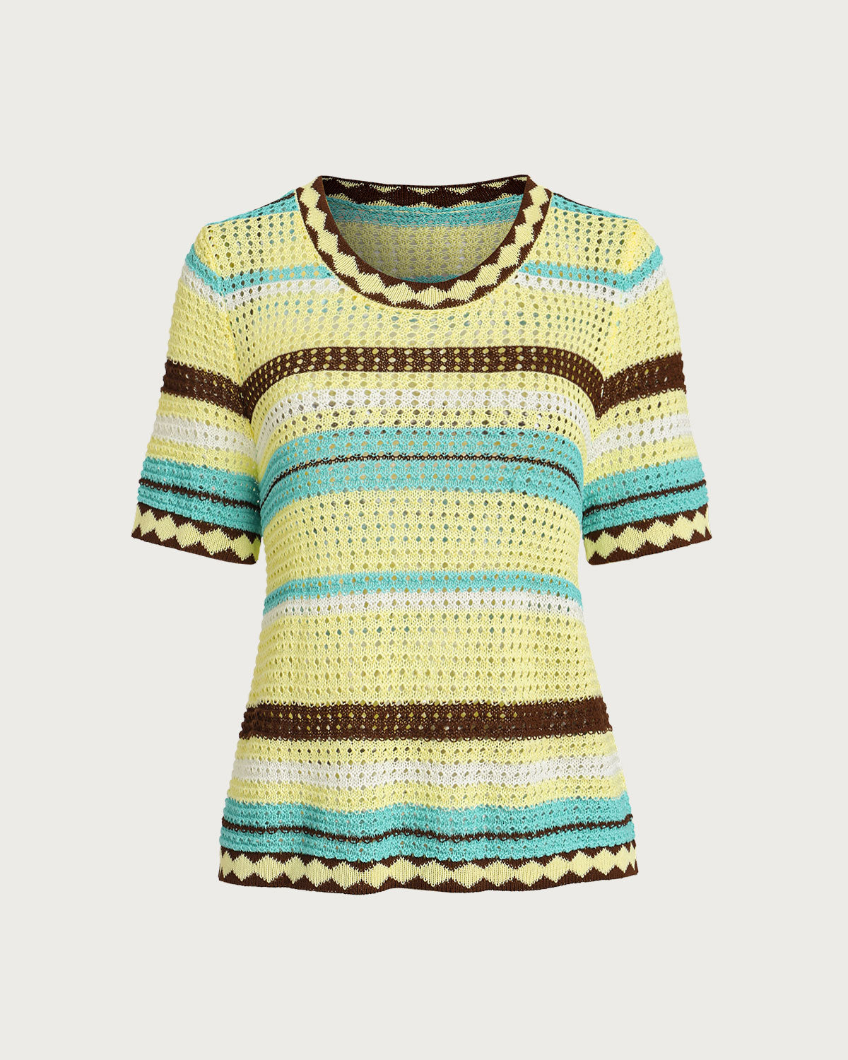 Çizgili Yuvarlak Yaka Tığ İşi Bluz