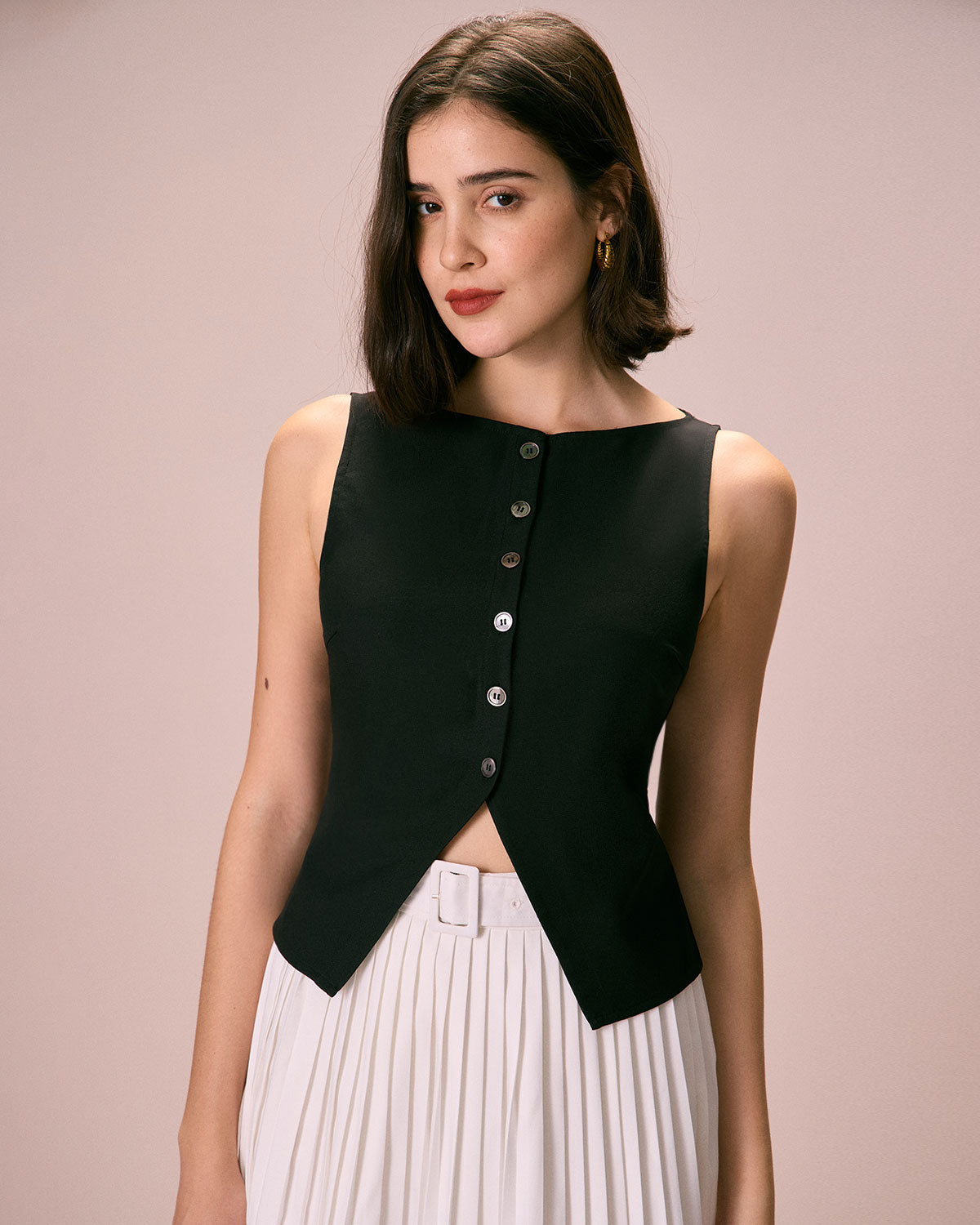 Hafif ve nefes alabilen kumaşların birinci sınıf karışımından üretilen bu siyah atlet , şıklığından ödün vermeden gün boyu konfor sağlar. Kayık yaka tasarımı, köprücük kemiklerinizi güzelce çerçeveleyerek hoş bir silüet oluşturarak şık bir dokunuş katar. Önündeki zarif düğmelerle süslenmiş bu atlet, her kombininize ince bir çekicilik ve zarafet katar.