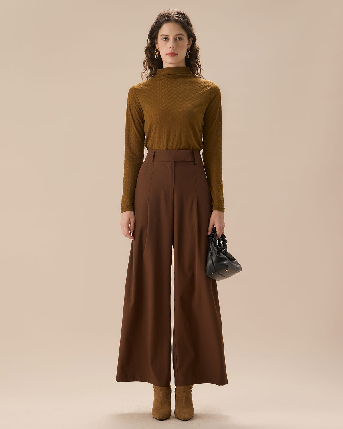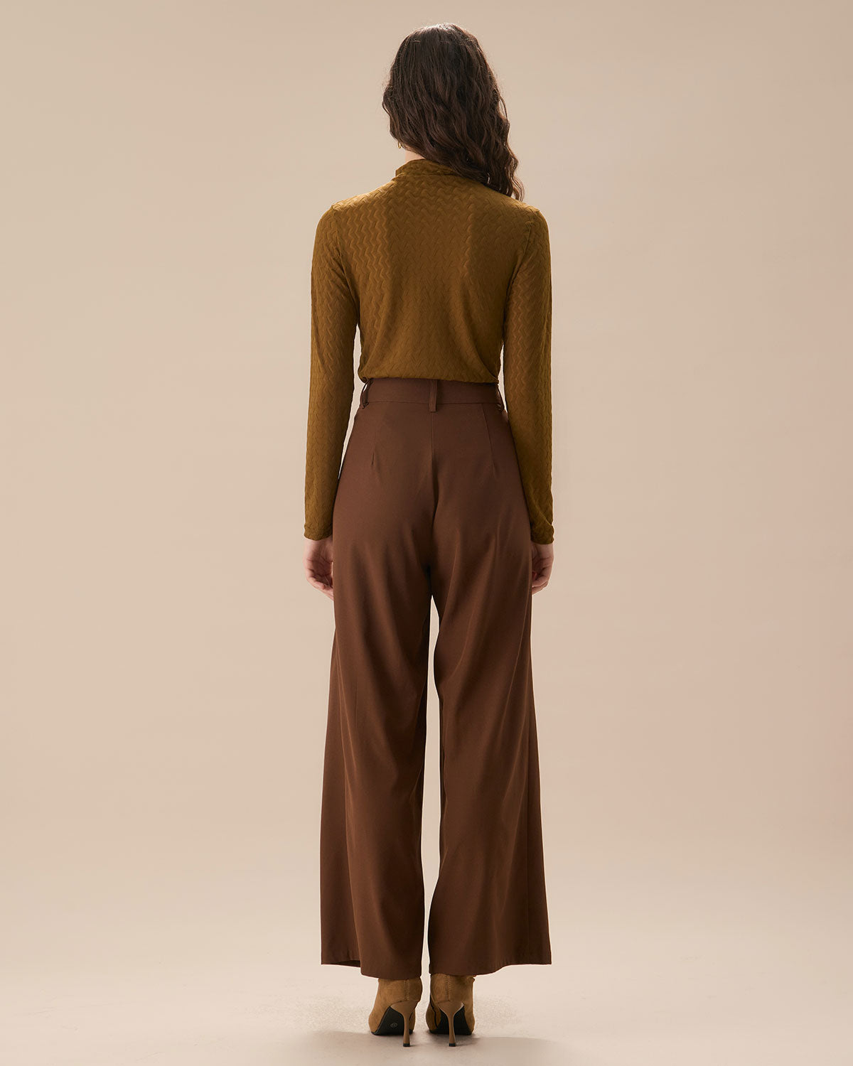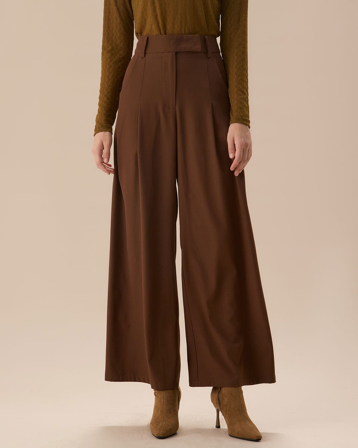 Kahverengi Yüksek Bel Cepli Düz Pantolon