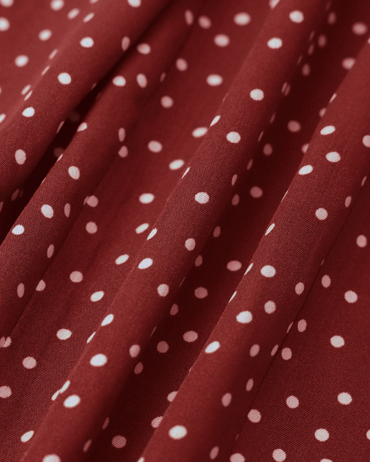 Puantiye deseni, retro, klasik ama aynı zamanda mizaçla bağdaştırılır. Fırfırlı omuz askıları tasarıma canlılık katarken, göğüs kısmındaki fırfırlı kısım güncel trendi takip ederek kadınsı zarafeti ve çekiciliği yansıtır. Ayrıca, yan yırtmaç ve yüksek bel tasarımı vücut oranlarını dengeleyerek görsel olarak normalden daha uzun görünmenizi sağlar.