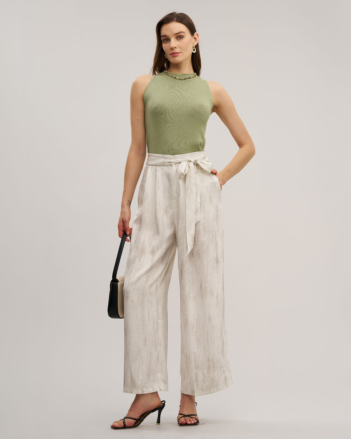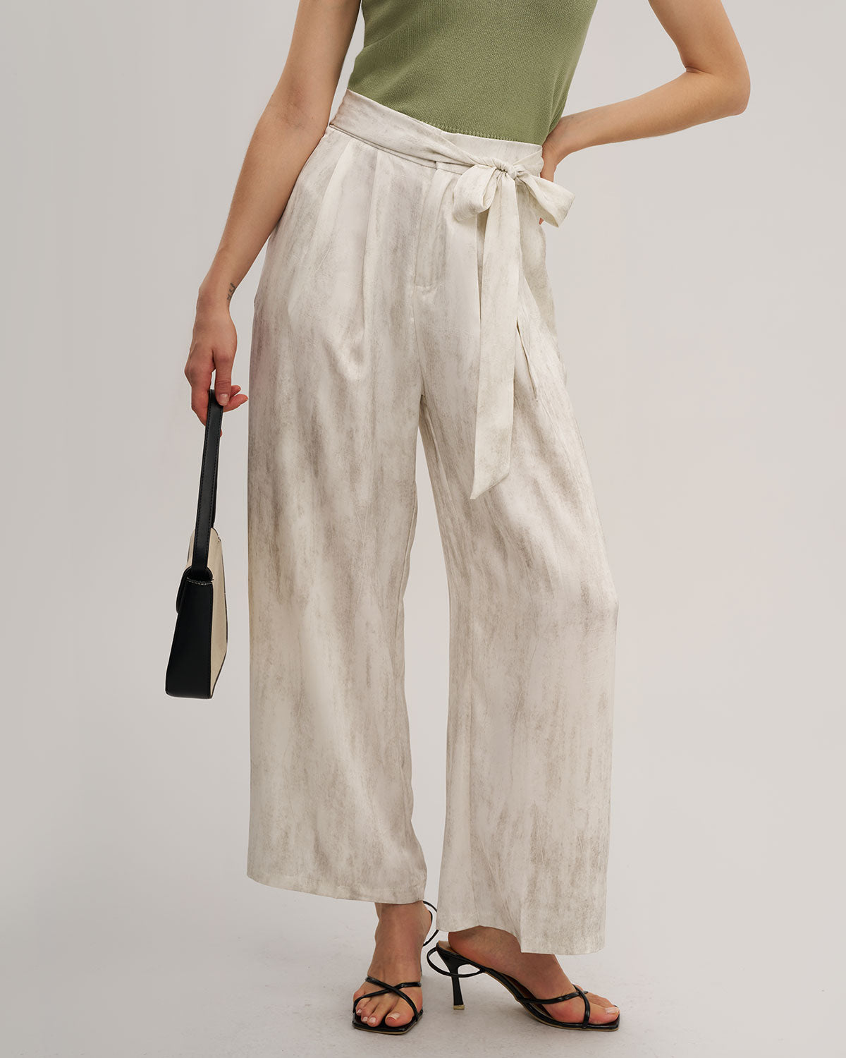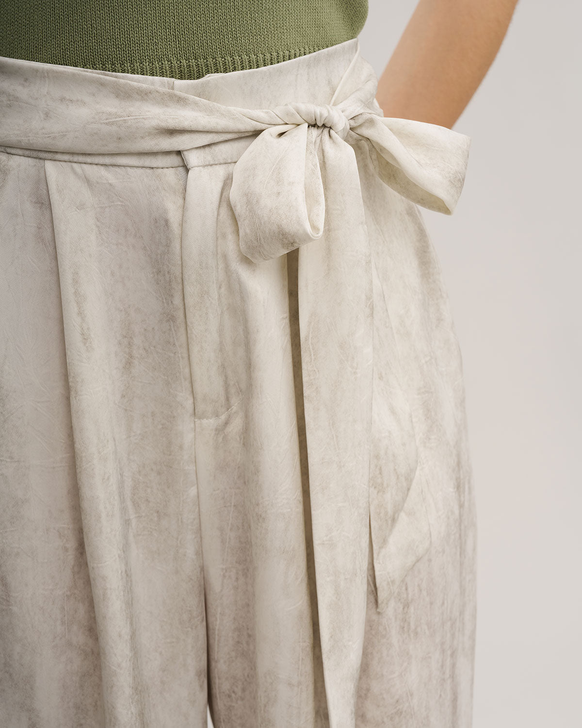 Beyaz Lastikli Bel Geniş Paça Pantolon