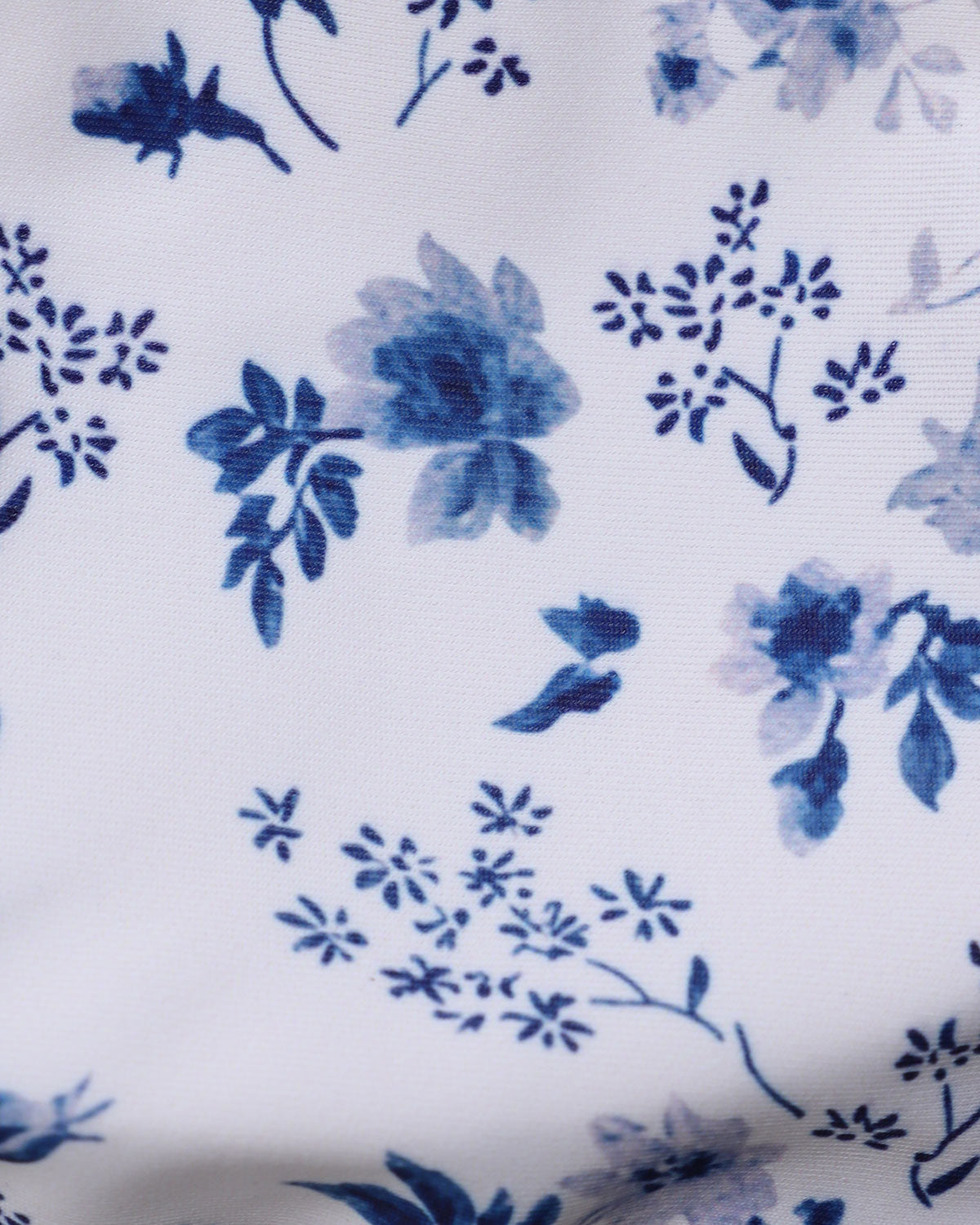 Beyaz Çiçekli Bağcıklı Üçgen Bikini Takımı