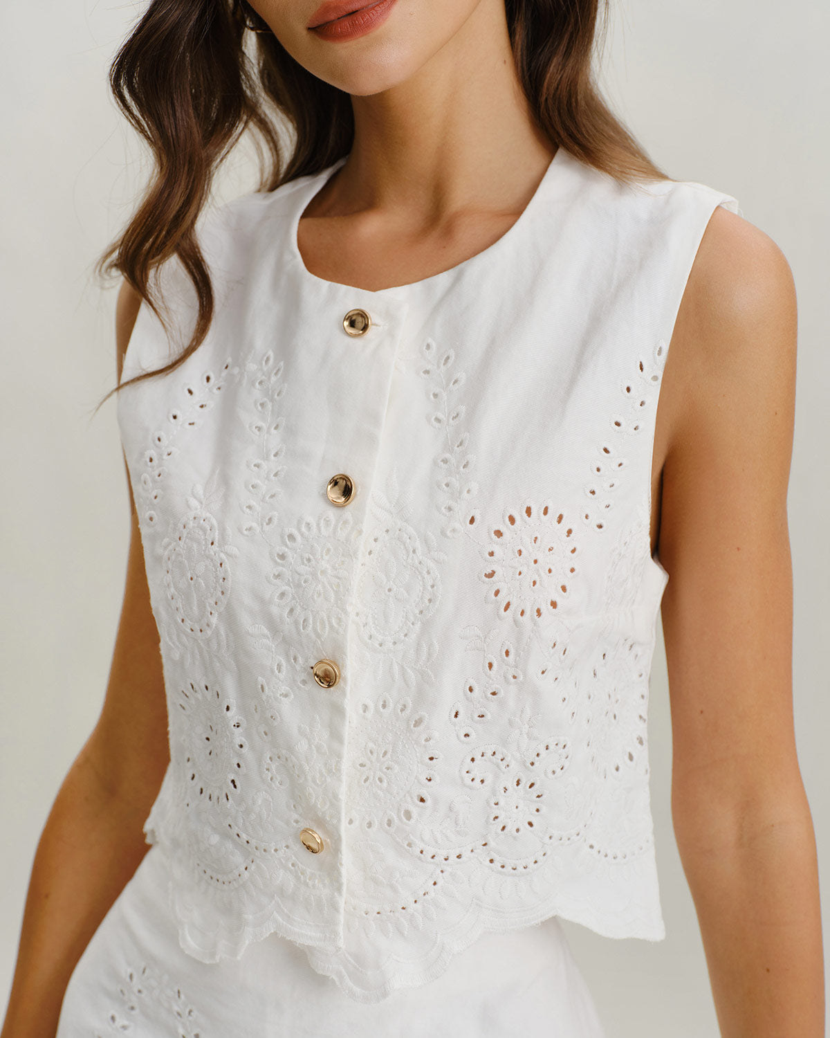 Beyaz Jakarlı Tek Sıra Yelekler