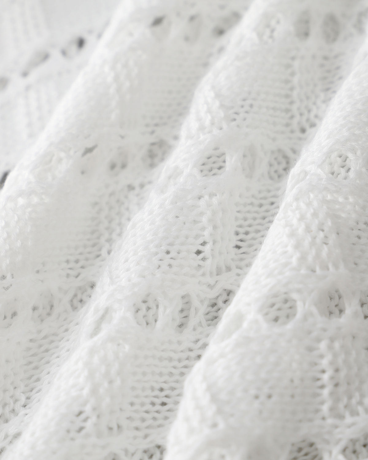 Beyaz Örgü Vücuda Oturan Kolsuz Uzun Elbise