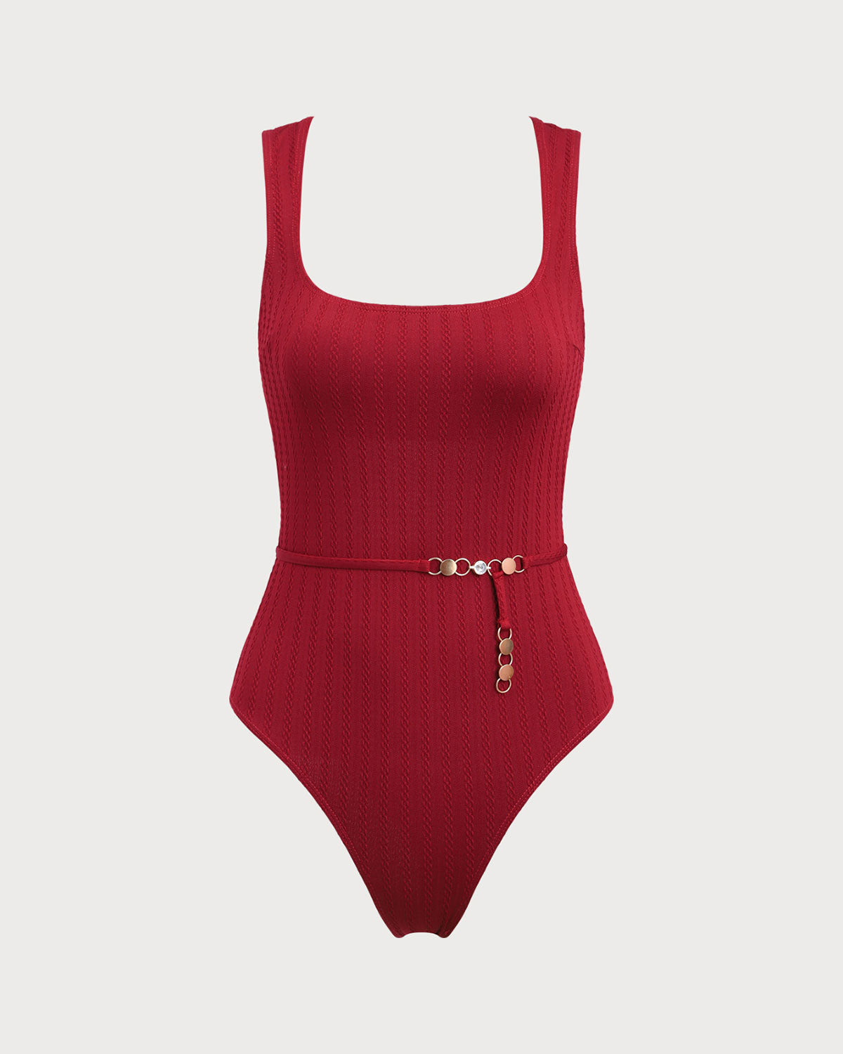 Şarap Kırmızısı Kesikli Tek Parça Mayo