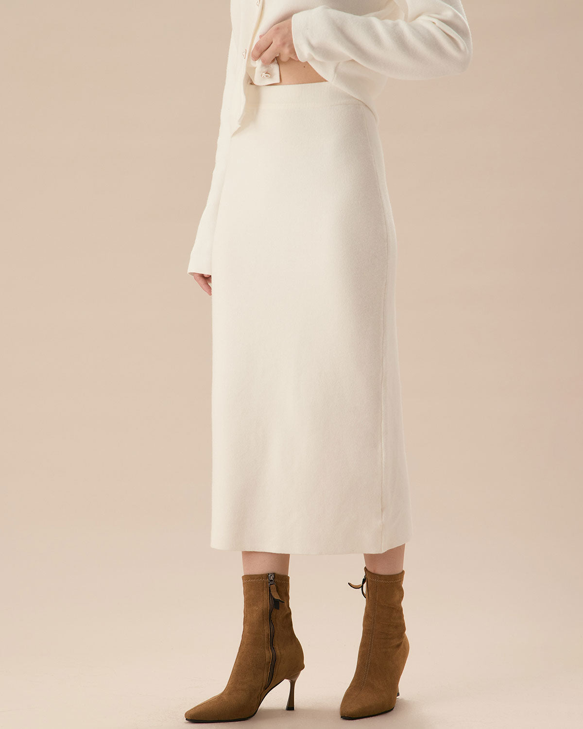Beyaz Lastikli Bel Düz Etek