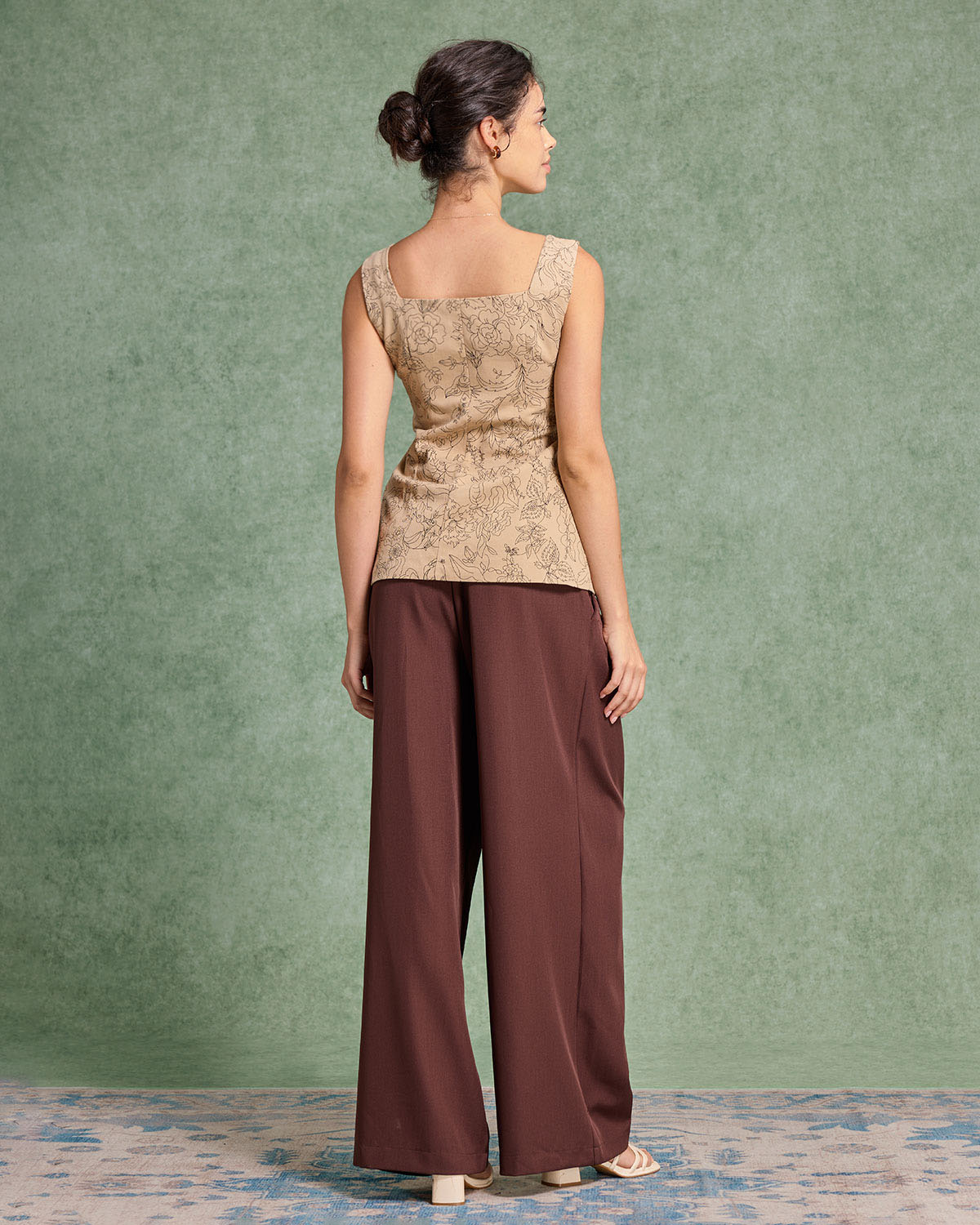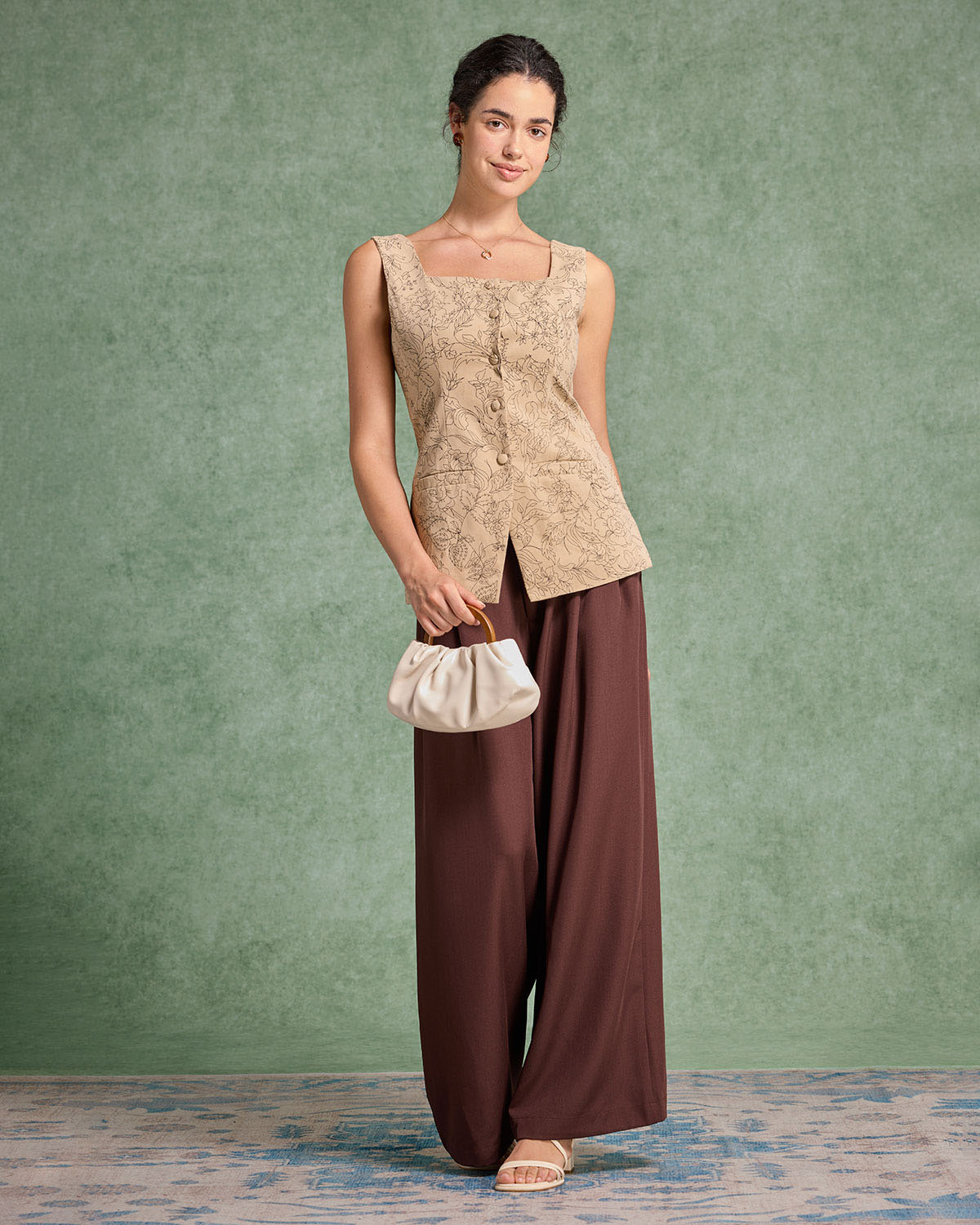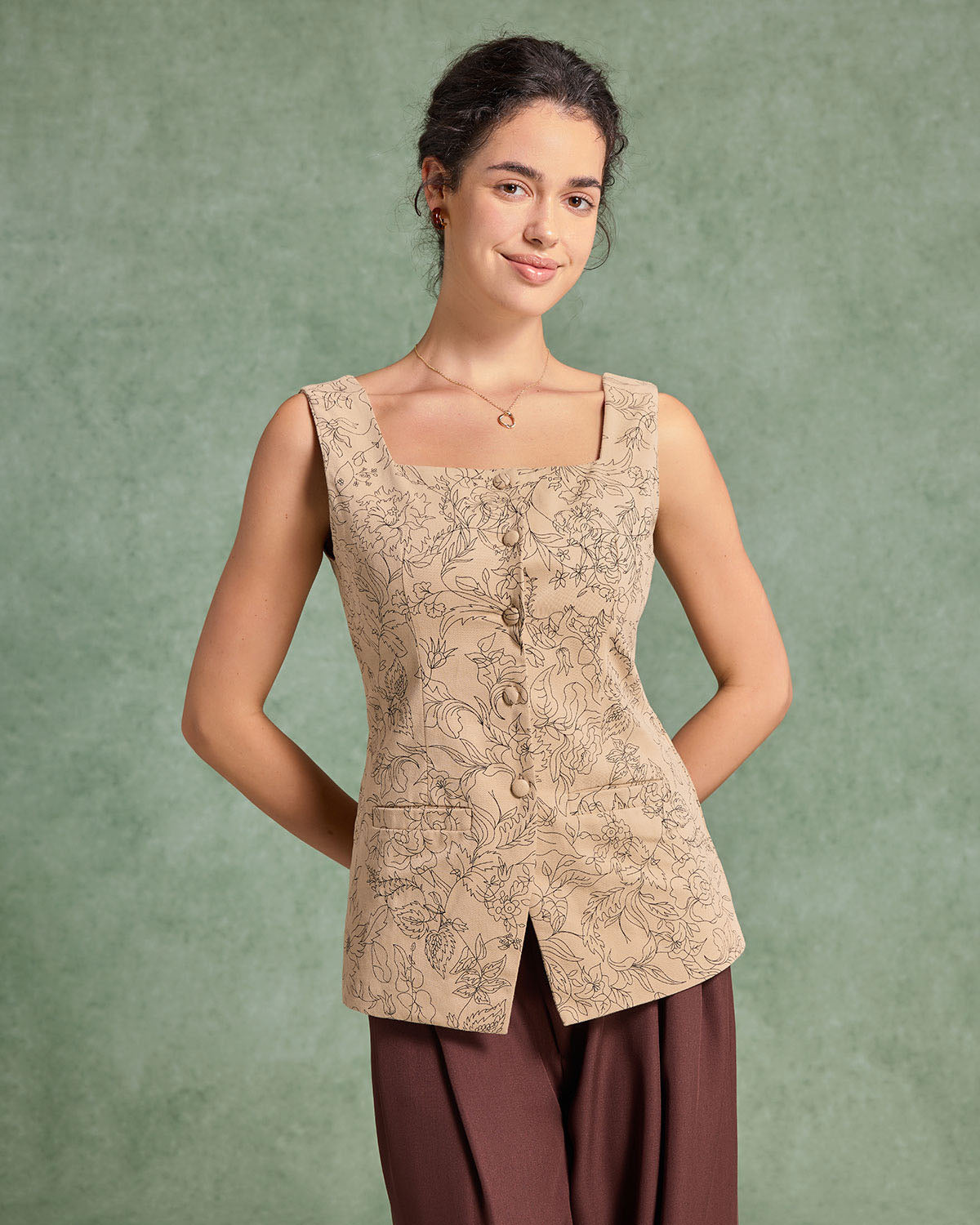 Sarı Çiçekli Kare Yaka Yelek