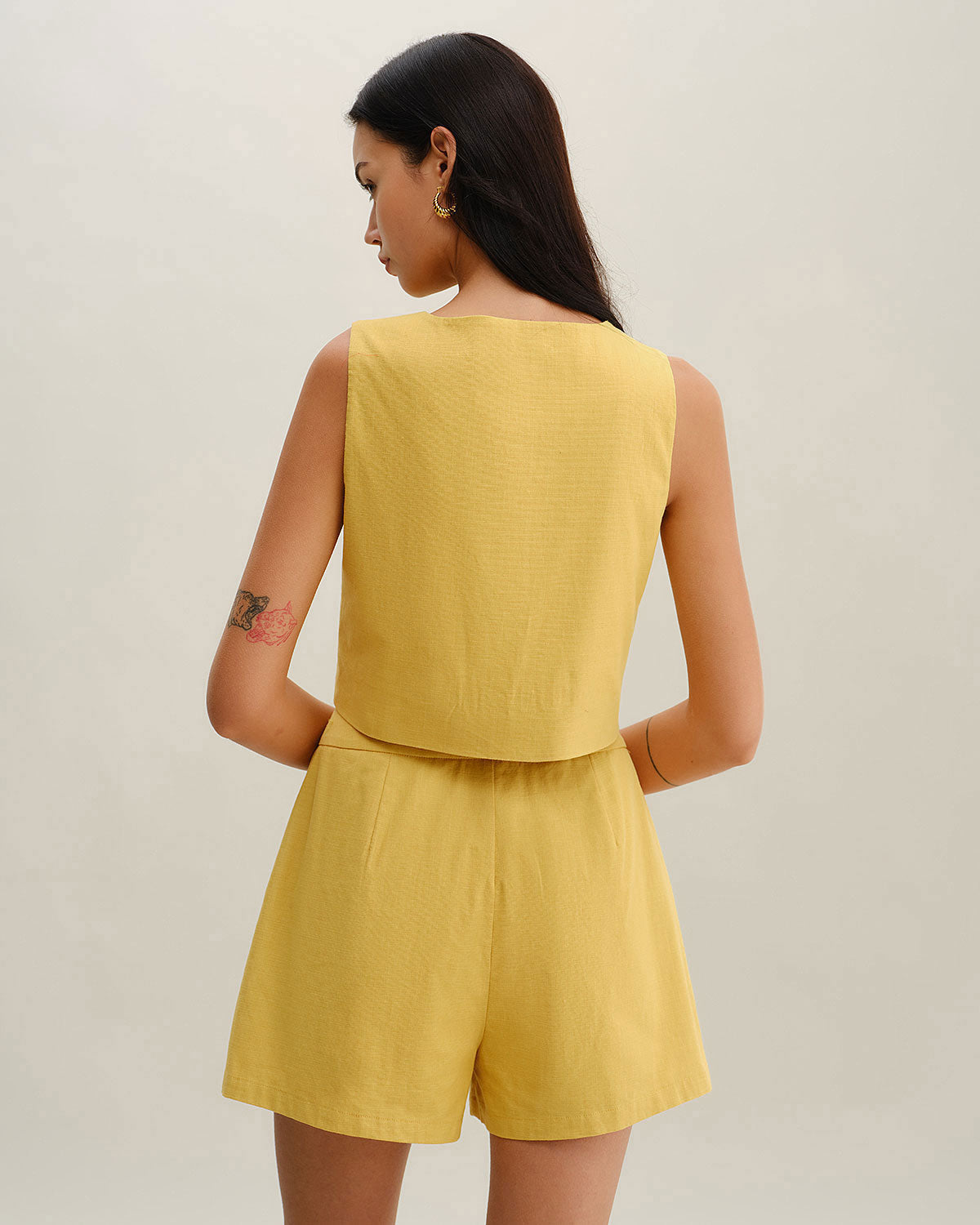 Sarı Büzgülü Düğmeli Şort